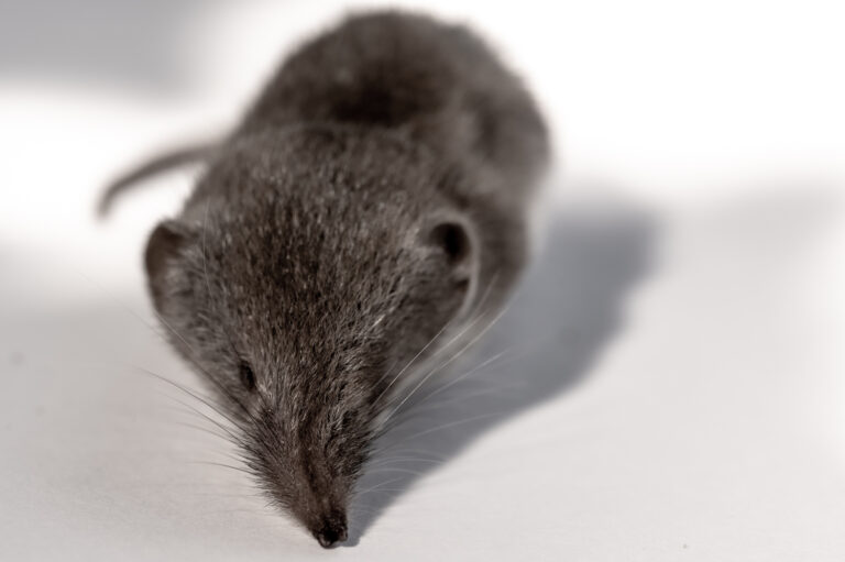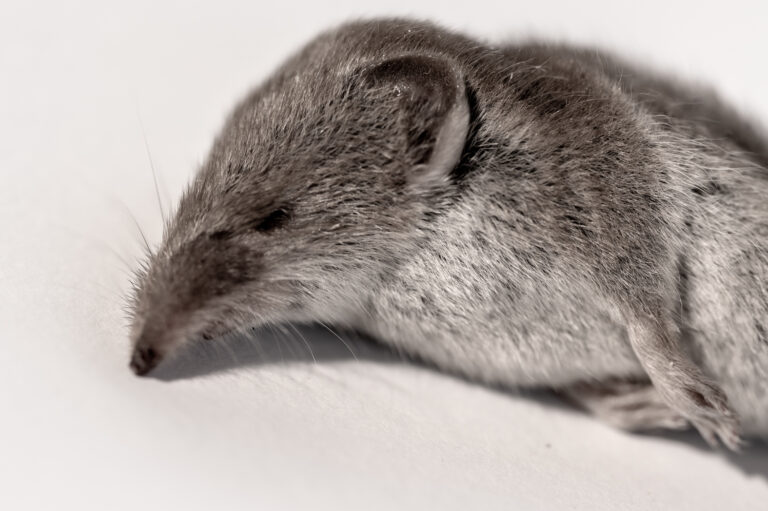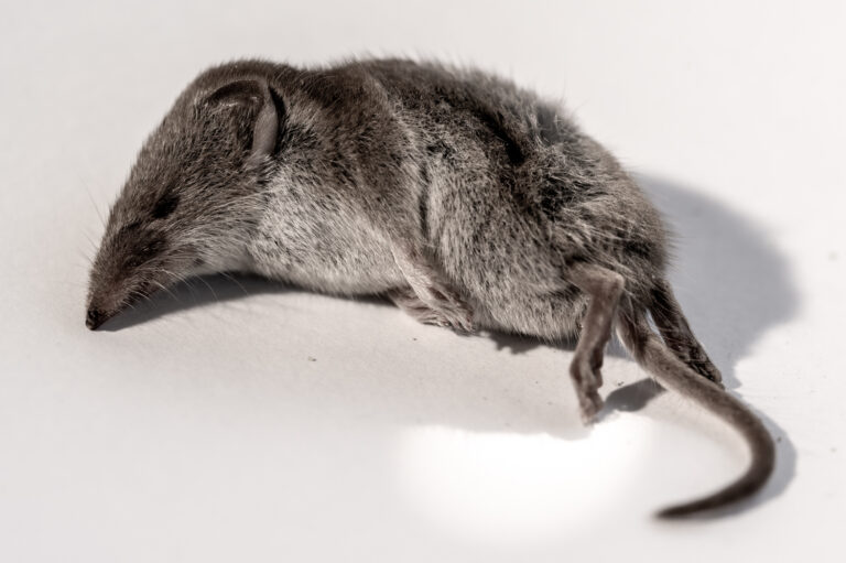 Dit spitsmuisje lag dood bij ons op het terras. Ik heb het opgepakt en fotografisch bestudeerd. Daarna heb ik het een eerwaardige begrafenis gegeven.